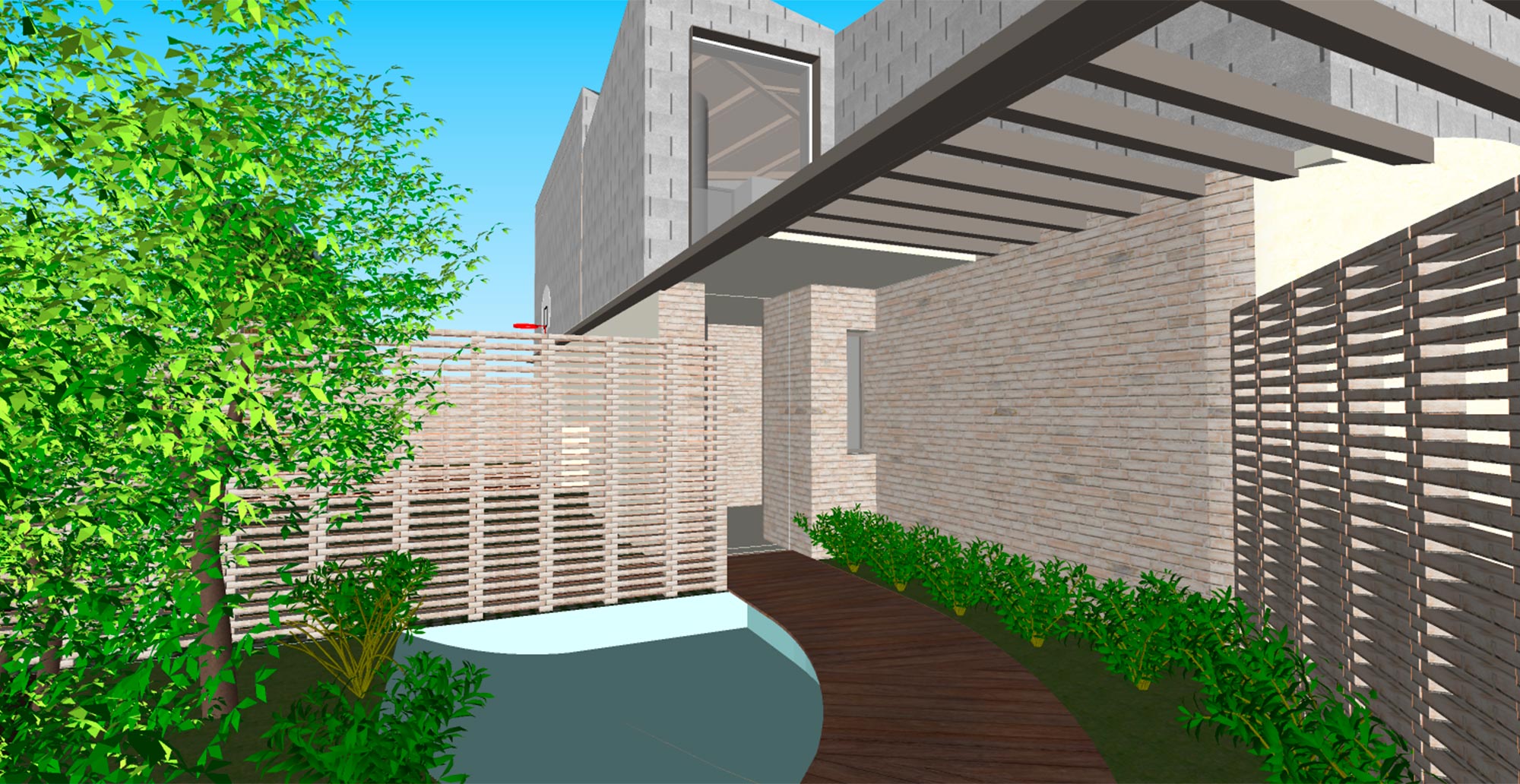 La planta baja se vincula con el exterior mediante la subdivisión del espacio perimetral exterior, generando patios que servirán para ampliar la cocina y conseguir una cocina exterior, para ampliar el salón, para hacer un huerto o incorporar una piscina. También se ha aprovechado el espacio para crear patios privados para cada una de las habitaciones. ¡Incluso una canchita de baloncesto expande el salón de los chicos hacia el exterior!
