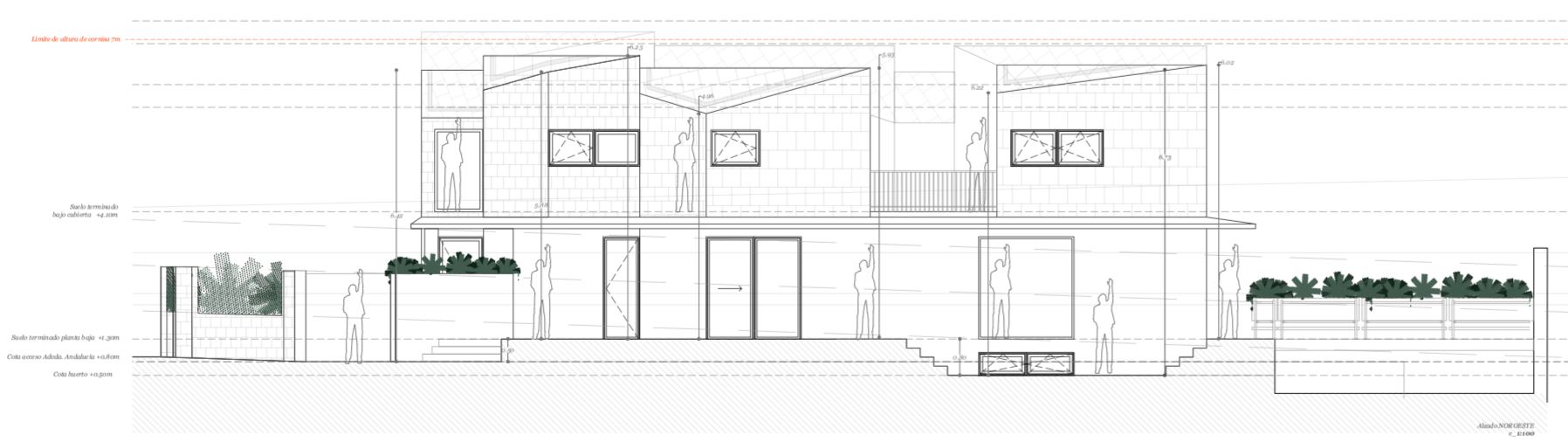 Abrirse hacia el norte era obligatorio, ya que era donde estaban las vistas a la sierra… El problema era que la orientación norte no es la mejor de cara a conseguir una buena eficiencia térmica, siendo, más bien, la peor orientación para abrir huecos.