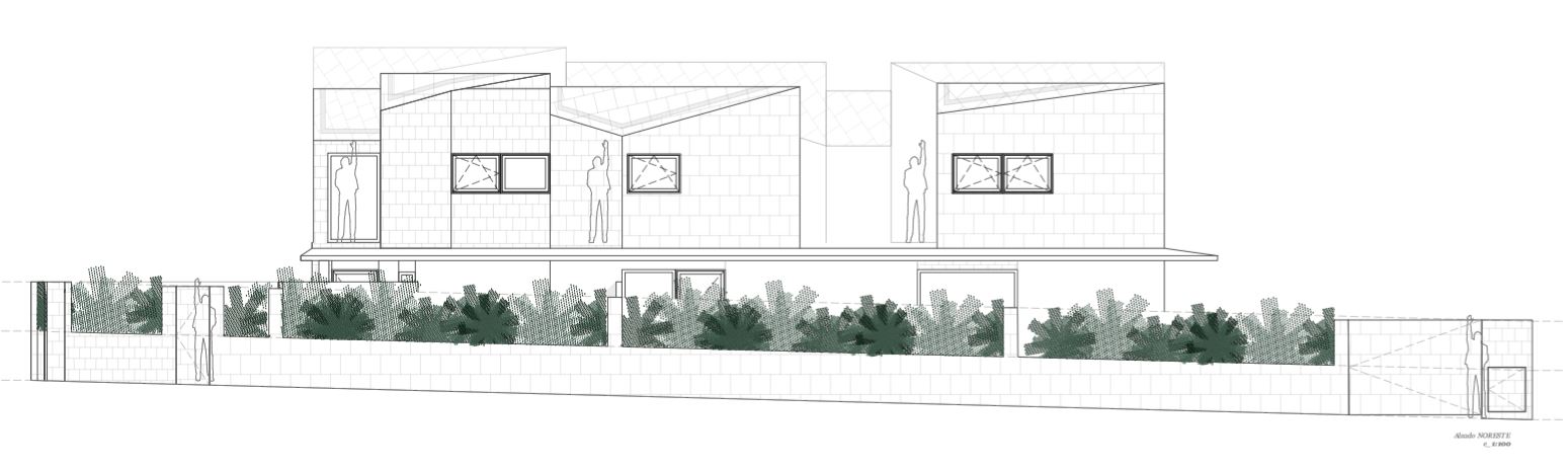 Additionally, they wanted to incorporate a cooperative space that went beyond the family experience, with the potential to open up in the future to include others in a “coliving” format, once the children became independent.