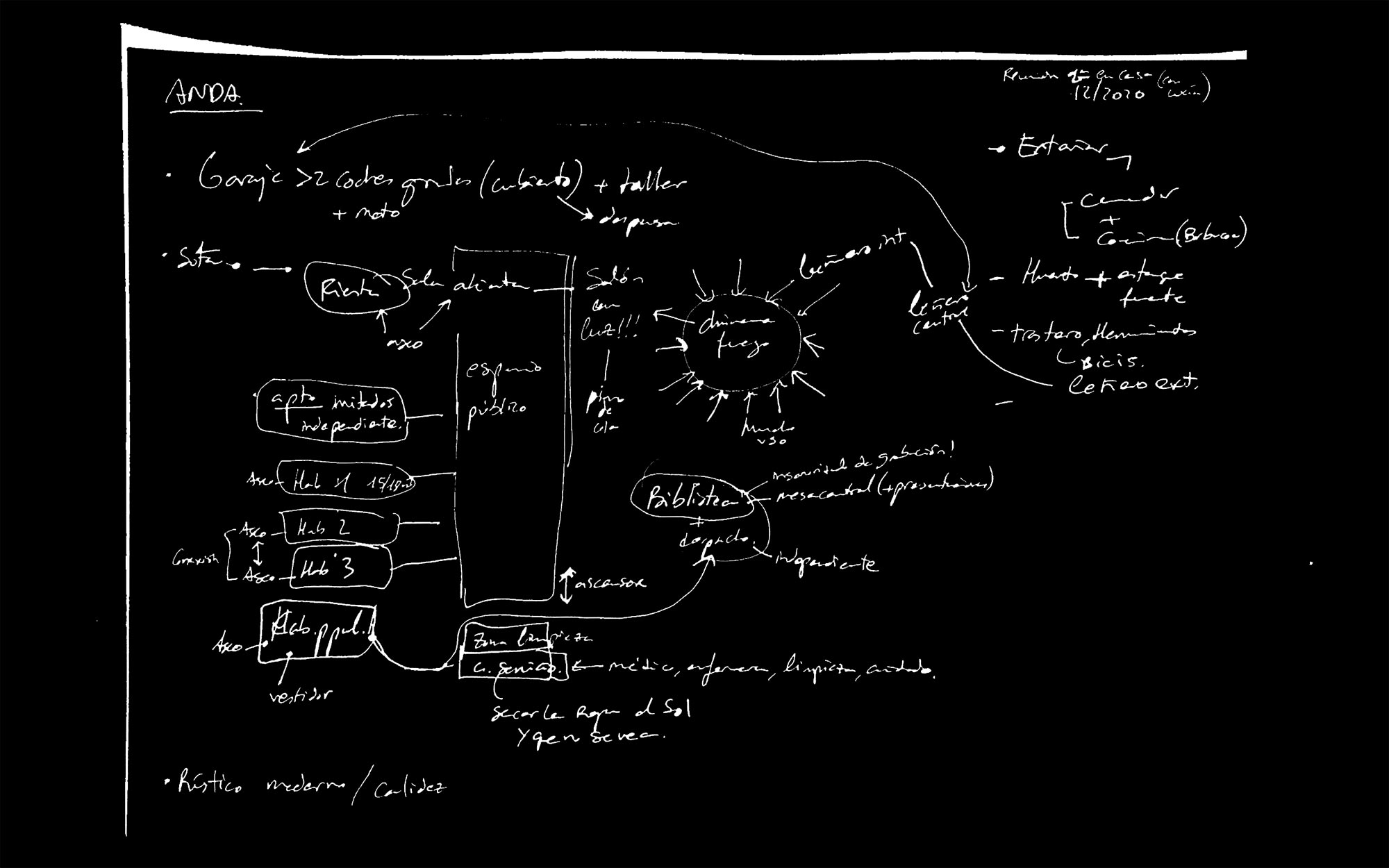 Fuimos a casa de los clientes para mostrarles el trabajo realizado. Primero, como siempre hacemos, les presentamos los conceptos que darían forma a su vivienda, después, contarles cuáles eran las estrategias que materializarían formalmente estos conceptos. Por último, mostrarles el resultado a través de imágenes y representaciones en tres dimensiones. Terminamos de contarles y, de repente, un gran silencio.