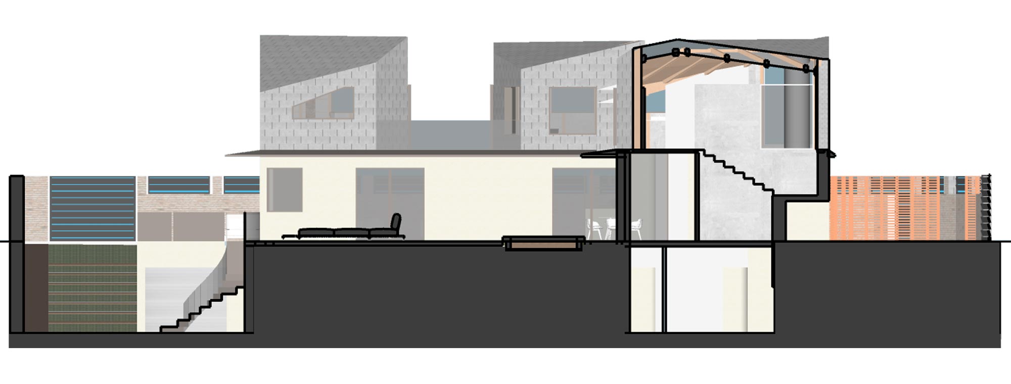 Además, querían incorporar un espacio cooperativo que trascendiera la experiencia familiar, pudiendo abrirse en el futuro a la incorporación de otras personas en formato “coliving”, cuando se independizaran los niños.